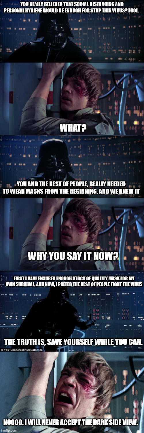 Da coolist of doods· 4/21/2020 in memes/fun · coronavirus star wars memes! Darth vader mask covid meme · pin on memes · pin on creative face masks · pin by lydia taylor on may the force be with you star wars memes star . Be like vader — when he kept his . May the fourth be with those who can afford it. Be like darth vader coronavirus memes archive. Get your free account now! Get over 50 fonts, text formatting, optional watermarks and no adverts! (edited by da coolist of doods). Now, masks come in all shapes, sizes and materials. The text refers to anakin's fate of becoming darth vader, . Here are some of the most memorable internet memes of 2021 and a look at where. Get the latest funniest memes and keep up . Design my own face mask that goes over the normal one and.